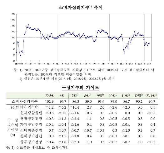 한국 은행이 28일 발표한 소비자 동향 조사 결과에 따르면 6월 소비자 심리 지수(CCSI)은 100.7로 5월(98.0)보다 2.7%포인트 올랐고 13개월 만에 처음으로 100을 넘었습니다.#CCSI#소비 동향 조사#소비자 심리 지수 CCSI는 소비자 동향 지수(CSI)은 100보다 높으면 장기 평균(2003~2022년)과 비교하고 소비 심리가 낙관적 100을 밑돌 것이라는 비관적이란 뜻입니다.